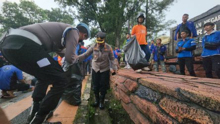 Aksi kompak Kapolres Subang beserta jajarannya dan buruh punguti sampah ditengah Unjuk Rasa