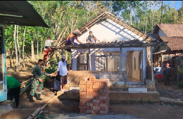 Bondowoso, jurnalpolisi.id Kehadiran Babinsa di tengah-tengah masyarakat wujudkan kebersamaan dalam membantu warga, Serda Darma Antoni, Istri bersama donatur melaksanakan kerja bakti merenovasi Mushola Al Muzakir Dusun Taman Rajeh Desa Sumber Salak Kecamatan Curahdami Kabupaten Bondowoso Provinsi Jatim, Senin (2/8/2021). Mushola Al Muzakir diperuntukkan oleh masyarakat sekitar sebagai sarana ibadah sehari-hari juga menampung kegiatan belajar mengajar 20 santri.Keberadaan Babinsa…