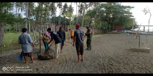Peduli Lingkungan, Babinsa Koramil Kalipuro Dan Warga Bersihkan Pesisir Pantai