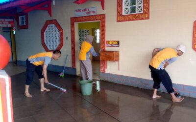 Bakti Religi, Polwan Polres Purbalingga Bersihkan Tempat Ibadah
