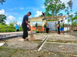 Banbinsa dan Masyarakat Gotong Royong Perbaiki Rumah Makan Pasca Angin Puting Beliung