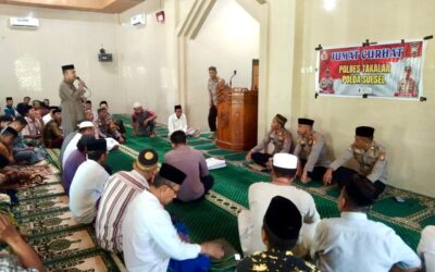 Takalar- jurnalpolisi.idMasjid Nurul Taqwa, Desa Paddinging, Kecamatan Mappakasunggu Kabupaten Takalarmenjadi tempat dilaksanakannya kegiatan Jum’at Curhat Polres Takalar yang Dipimpin langsung oleh Kabag Perencanaan AKP Sudirman selaku yang mewakili Kapolres Takalar AKBP Gotam Hidayat. Acara ini merupakan bagian dari Upaya Polres Takalar Untuk mendekatkan diri dengan masyarakat serta mendengarkan dan mencari solusi atas permasalahan yang ada…