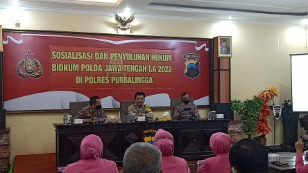 Purbalingga –jurnalpolisi.id Tim dari Bidang Hukum (Bidkum) Polda Jateng melaksanakan sosialisasi dan penyuluhan hukum di Polres Purbalingga. Kegiatan dilaksanakan di Aula Loka Anindhita Mapolres Purbalingga, Jumat (24/6/2022) pagi. Tim dari Bidkum dipimpin oleh Kompol Hartono. Sedangkan peserta sosialisasi adalah personel Polres Purbalingga dan perwakilan polsek jajaran serta Bhayangkari. Ketua Tim Kompol Hartono mengatakan kami dari…