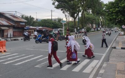 Brimob Polda Kaltim Jadi Sahabat Pelajar, Bantu Penyeberangan Sekolah