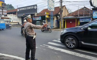 Ciptakan Rasa Aman Bagi Pengguna Jalan Raya, Personel Lantas Polsek Ciampea Atur Lalu Lintas