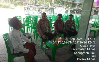 Siak, jurnalpolisi.id Dalam rangka memastikan situasi tetap aman dan kondusif selama Pentahapan Pemilukada Tahun 2024, Kapolsek Minas Kompol Wan Mantazakka SH MH memimpin kegiatan Cooling System Sambang Tokoh agama Imam Masjid Rahmat di Kelurahan Minas Jaya, Kecamatan Minas, Kabupaten Siak, Riau, Sabtu (21/09/2024) siang. “Dalam hal ini kita meminta kepada Tokoh Agama atau Imam Masjid…