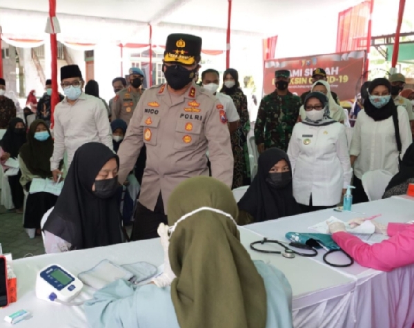 Kapolda Jatim Tinjau Vaksinasi Presisi di Ponpes Mambaul Ma’arif, Denanyar, Jombang