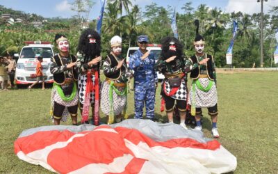 Dengan Teatrikal Punakawan, Atraksi Atlet Paralayang Binaan Lanud Jenderal Besar Soedirman Meriahkan Penutupan TMMD Reguler Ke-120