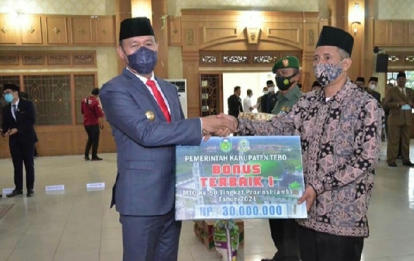 TEBO, jurnalpolisi.id Pemkab Tebo memberikan bonus bagi peserta kafilah Tebo yang berprestasi pada MTQ ke-50 Tingkat Provinsi Jambi Tahun 2021 beberapa waktu lalu, sekaligus pemberian tali asih kepada keluarga Veteran yang ada di Kabupaten Tebo, usai gelar Upacara Peringatan Hari Pahlawan ke 76 tahun 2021, pada Rabu (10/11/2021). Peserta kafilah Tebo yang berprestasi antara lain untuk Cabang Hifzil…
