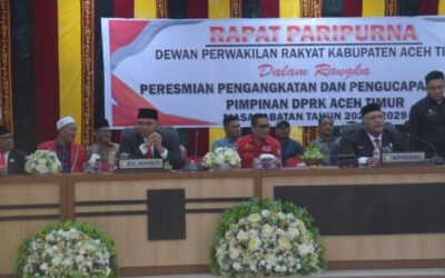 Aceh Timur – jurnalpolisi.id Penjabat Bupati Aceh Timur Amrullah M Ridha berharap Dewan Perwakilan Rakyat Kabupaten (DPRK) dapat menjadi jembatan antara pemerintah daerah dan masyarakat, serta mampu menyuarakan aspirasi rakyat dalam setiap kebijakan yang diambil. Hal tersebut dikatakan Amrullah saat memberikan kata sambutan pada acara pengucapan sumpah pimpinan DPRK Aceh Timur masa jabatan 2024 –…