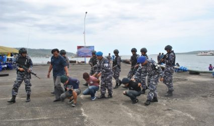 DUKUNG PENGAMANAN KTT G-20 DI BALI, LANAL BANYUWANGI BERKOLABORASI DENGAN UNSUR MARITIM BANYUWANGI GELAR LATIHAN PENGAMANAN LAUT DI PERAIRAN SELAT BALI
