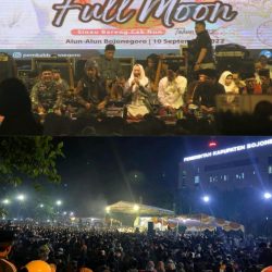 Full Moon “Sinau Bareng Cak Nun” Ribuan Jamaah Maiyah Dari Berbagai Kota Padati Alun – Alun Bojonegoro meskipun di guyur hujan.