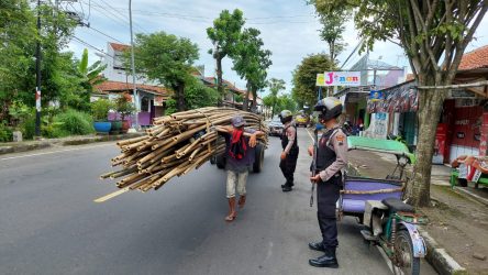 Gayung Bersambut, Saat Susah Payah Dorong Bambu, Ada Petugas Patroli Sat Samapta Turun Dari Motor