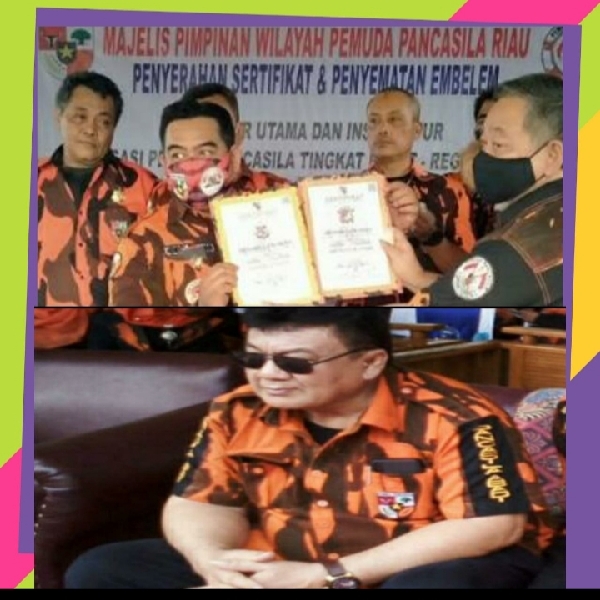 H.Fran Rizal Oyong Beri Penghargaan Berupa Sertifikat Kepada Kader Mpw Pemuda Pancasila Se-Riau.