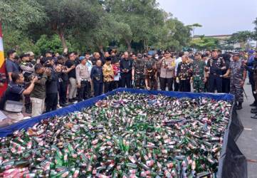 Hasil Operasi pekat, Polres Semarang musnahkan ribuan botol minuman keras.