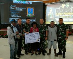 JAYAPURA – jurnalpolisi.id Suasana haru dan isak tangis mewarnai acara Rapim Kodam XVII/Cenderawasih saat penyerahan bantuan dan santunan kepada keluarga Almarhum Praka Anumerta Lukas A. Woremba oleh Pangdam XVII/Muhammad Saleh Mustafa yang diterima secara langsung oleh Ibu Kandung almarhum Praka Anm Lukas A Worembai bernama Amelia Yawandare dan Bapak Demianus Worembai (Bapak angkat Alm Praka…