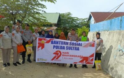 Sultra, – jurnalpilisi.id Dalam rangka memperingati Hari Bhayangkara ke-79, DitPamobvit Polda Sulawesi Tenggara (Sultra) menggelar kegiatan bakti sosial berupa pembagian paket sembako kepada warga masyarakat, Selasa (24/6/2025). Kegiatan tersebut dipimpin langsung oleh Wadir Pamobvit Polda Sultra Akbp Darmono,S.Pd,M.si bersama anggotanya. Sebanyak 100 paket sembako dibagikan kepada warga masyarakat yang berhak menerima yang berada di Kelurahan…