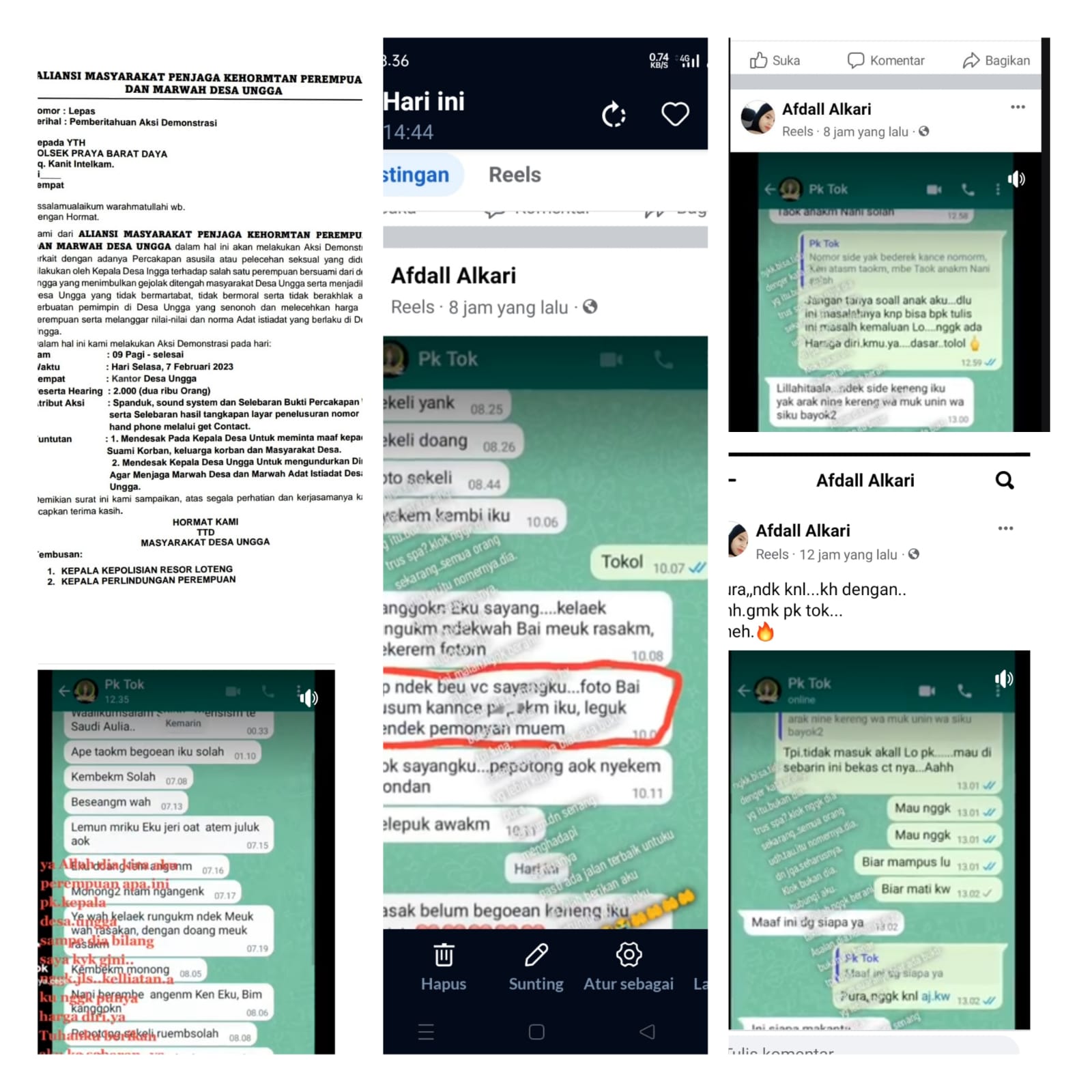 Lombok Tengah-Jurnalpolisi.id Warga Masyarakat Desa Ungga Kec. Praya Barat Daya dihebohkan dengan pengakuan pemilik akun Facebook Afdall Alkari yang membeberkan percakapannya dengan Kades Ungga melalui https://www.facebook.com/reel/1555032668256814?mibextid=6AJuK9&s=chYV2B&fs=e https://m.facebook.com/story.php?story_fbid=pfbid0T4Zcj5uqBoeCzbmfKL2kocjh6cdL8UZJEpFwCDn1iEpBV6R1TkwBY2wdnoz63NYml&id=100084765470572&sfnsn=wiwspwa&mibextid=RUbZ1f https://m.facebook.com/story.php?story_fbid=pfbid02Pp4kY4LfPbwSkpRqeQRWjuyKMFTDgmQqcKfpJas6a4mv2Q9zvLfz6Dc9dCyfzQ2Al&id=100084765470572&sfnsn=wiwspwa&mibextid=RUbZ1f Akibat dari akun Facebook tersebut Ribuan Warga masyarakat Desa Ungga Kec. Praya Barat Daya Kab.Lombok Tengah yang tergabung dalam Aliansi Masyarakat Penjaga Kehormatan Perempuan dan Marwah Desa…