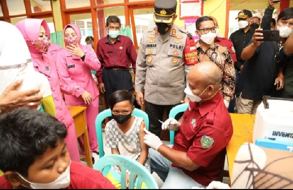 Kapolres Indramayu Tinjau Langsung Kegiatan Vaksinasi Anak Usia 6-11 Tahun