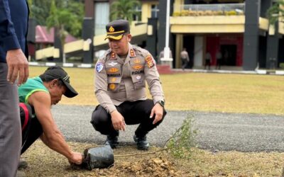 Kapolres Kuansing Tanam Pohon Trembesi di Mapolres, Awali Penanaman Pohon secara Serentak.