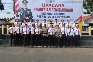 MUBA– jurnalpolisi.id Kapolres Musi Banyuasin AKBP Siswandi, SiK SH MH memberikan sebanyak penghargaan kepada 36 (tiga puluh enam) Personil Polres dan Polsek dalam jajaran Polres Musi Banyuasin yang berprestasi dalam menjalankan tugas pada Senin(08/08/22) bertempat di halaman Polres Muba. Penghargaan tersebut di berikan langsung oleh Kapolres Muba AKBP Siswandi,SiK SH MH , kepada sebanyak 36…