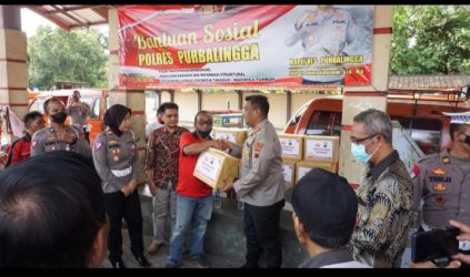 Kapolres PurbaIingga Jalin Komunikasi Sekaligus Serahkan Bansos Bagi Sopir Angkot