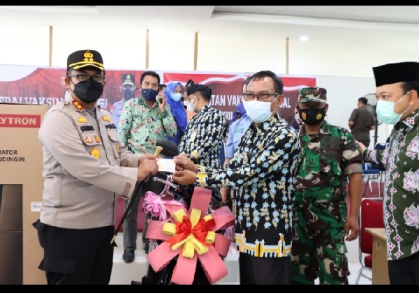 Kapolres Siak Serahkan Satu Unit Sepeda Motor Hadiah Undian Pekan Vaksinasi Gelombang Pertama