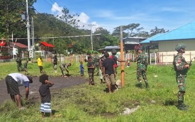Karya Bhakti Bersama Masyarakat, Satgas Yonif 641/Bru Perbaiki Fasilitas Olahraga Di Distrik Kurima