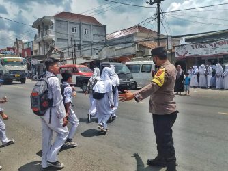 Kegiatan Rutin Polsek Cikande, Melakukan Gatur Lantas Saat Jam Pulang Siswa Sekolah