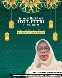 Kepala Dinas Pemberdayaan Masyarakat Desa dan Perlindungan Anak Dra. Maryam Matdoan, M. Si Mengucapkan Selamat Hari Raya Idul Fitri