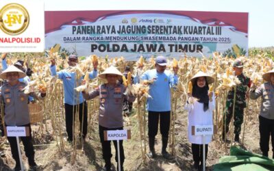 Banyuwangi – jurnalpolisi.id Polresta Banyuwangi menggelar panen jagung serentak kuartal III pada Sabtu (27/9/2025), bersama Kapolda Jawa Timur Irjen Pol. Drs. Nanang Avianto, M.Si., jajaran PJU Polda Jatim, Bupati Banyuwangi, Danlanal, Dandim 0825, serta masyarakat kelompok tani. Dalam kesempatan tersebut, Kapolresta Banyuwangi Kombespol Rama Samtama Putra, S.I.K., M.Si., M.H., melaporkan capaian pendampingan Polresta Banyuwangi terhadap…