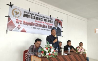 Tapanuli Utara – jurnalpolisi.id Anggota DPR RI dari Fraksi PDIP Drs.Rapidin Simbolon, MM melakukan Kunjungan Reses di Kecamatan Pangaribuan Kabupaten Tapanuli Utara bertempat di Aula GKPI Pakpahan, Kamis, 12/12/2024. Dalam arahannya Rapidin mengajak masyarakat konstituen di Pangaribuan untuk tetap menjaga persatuan dan kesatuan dalam bermasyarakat dan untuk saling bergotongroyong dalam membenahi pembangunan di Kecamatan Pangaribuan….