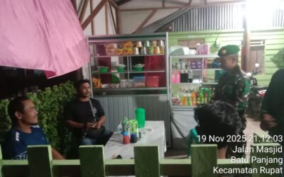 Bengkalis, jurnalpolisi.id 19 November 2025 — Kegiatan patroli mitigasi sistem keamanan lingkungan (siskamling) kembali dilaksanakan di wilayah Koramil 04/Rupat sebagai upaya menjaga keamanan dan ketertiban masyarakat. Patroli gabungan ini berlangsung pada Rabu, 19 November 2025 mulai pukul 20.45 WIB hingga selesai di Kelurahan Batu Panjang, Kecamatan Rupat, Kabupaten Bengkalis. Kegiatan tersebut melibatkan unsur TNI, aparatur…