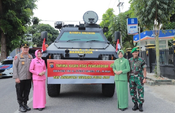 Pelepasan Danrem diiringi Dengan Gegap Gempita di Markas Polda Riau