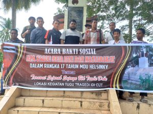 Peringati 17 Tahun Mou Helsinky Masyarakat Dan KPA Sagoe Meja Ijoe Rawat Tugu Sejarah Pelanggaran HAM tragedi Simpang Kuala Idi Cut