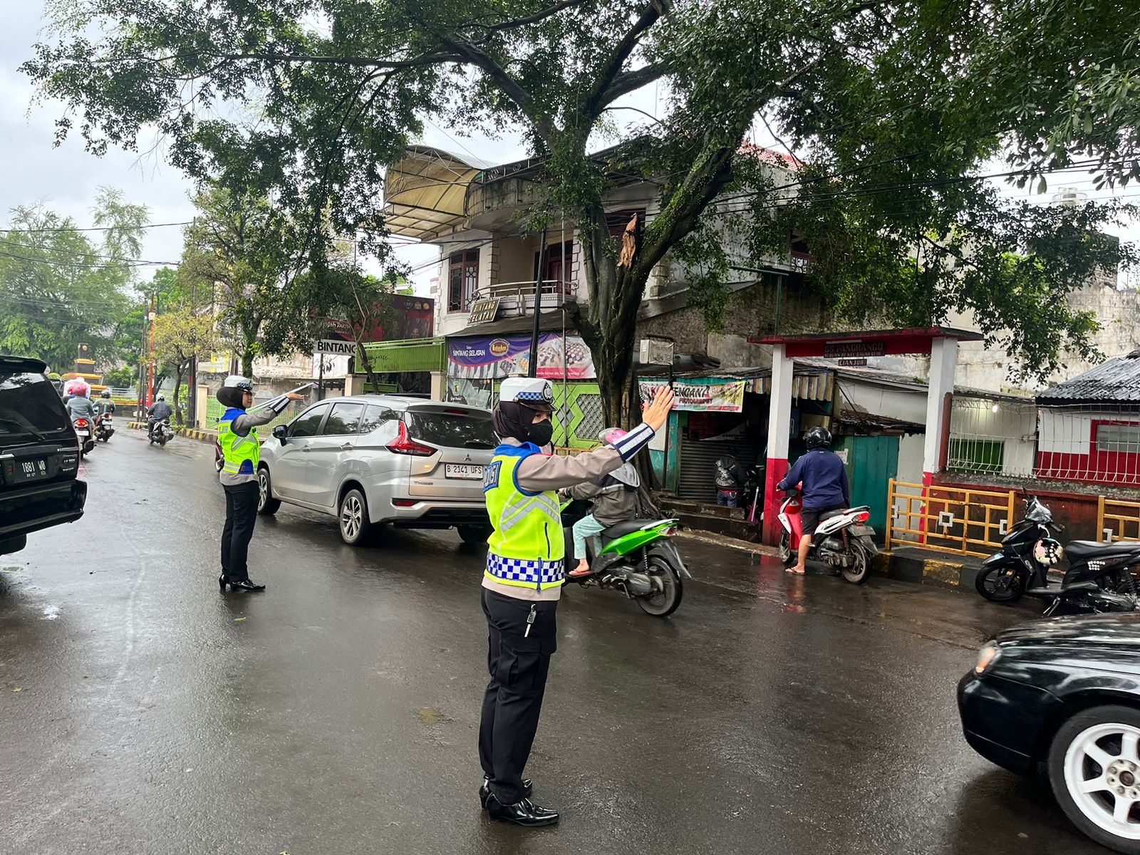 Gatur Pagi Gerimis, Personel Polres Cianjur Ingatkan Pengendara Agar Berhati-Hati Dalam Berkendara