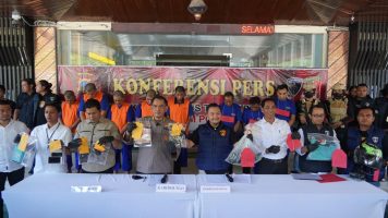 KOTA SEMARANG – jurnalpolisi.id Komplotan pencurian dengan kekerasan (Curras) bersenjata api ditangkap jajaran Ditreskrimum Polda Jateng. Lima orang tersangka diringkus setelah merampok driver ojek online Maxim dan merampas mobil korban. Hal tersebut diungkapkan Direktur Reskrimum Kombes Pol Johanson Ronald Simamora didampingi Kabidhumas Kombes Pol Iqbal Alqudusy dalam konferensi pers ungkap kasus di Mapolda Jateng pada…