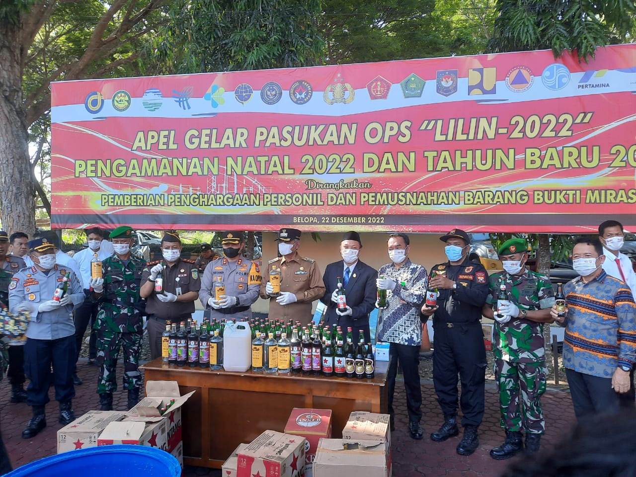 Luwu-jurnalpolisi.id Polres Luwu memusnahkan barang bukti minuman keras hasil Operasi Penyakit Masyarakat (Pekat) menjelang Natal dan Tahun Baru (Nataru) di halaman Mapolres Luwu Belopa Kab Luwu, Kamis (22/12/2022). Turut hadir dalam kegiatan tersebut, Bupati Luwu DR. Drs. H. Basmin Mattayang, M.Pd., Ketua DPRD Kab Luwu Rusli Sunali, S.E., Kajari Luwu Andi Usama Harun, S.H, M.H,…
