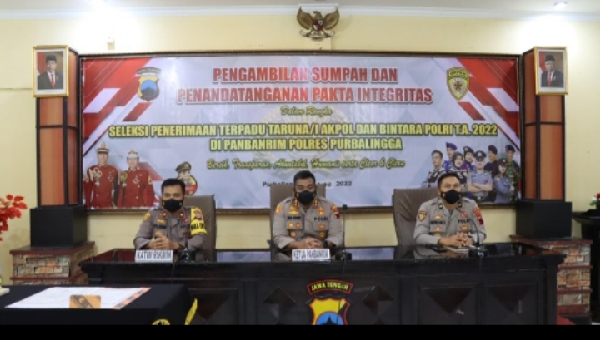 Polres Purbalingga Gelar Pengambilan Sumpah dan Penandatangan Pakta Integritas Penerimaan Polri 2022