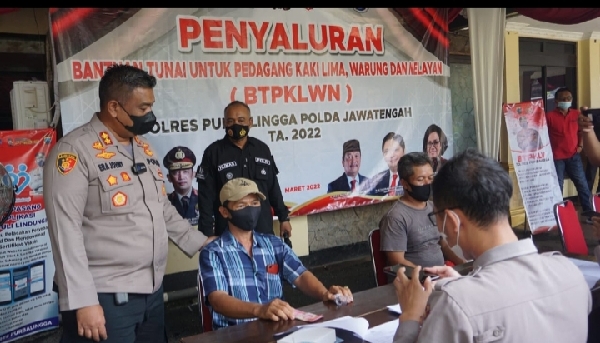 Polres Purbalingga Salurkan Bantuan Tunai Pedagang Kaki Lima Warung dan Nelayan