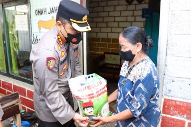 Polresta Banyuwangi Bagikan Sembako Kepada Warga Pasca Penyesuaian Harga BBM
