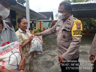 Deli Serdang – jurnalpolisi.id Untuk meringankan beban masyarakat pasca kenaikan harga BBM, Polsek Batang Kuis Polresta Deli Serdang bagikan bantuan sosial (bansos) kepada masyarakat yang membutuhkan, Kamis (27/10/2022). Kapolresta Deli Serdang Kombes Pol Irsan Sinuhaji SIK, MH Melalui Kapolsek Batang Kuis AKP Simon Pasaribu SH , beserta anggota membagikan bansos berupa Beras seberat 5 kg…