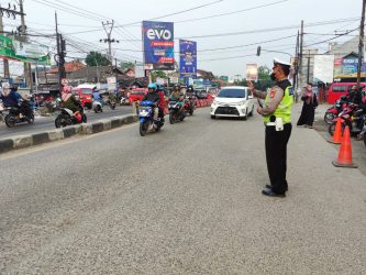Polsek Ciruas Polres Serang Melaksanakan Pengaturan Lalin di Perempatan Lampu Merah Ciruas