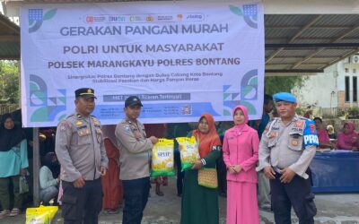 Bontang jurnalpolisi.id Polres Bontang melalui Polsek Marangkayu menggelar Gerakan Pangan Murah (GPM) guna menjaga stabilitas pasokan dan harga beras di wilayah Kecamatan Marangkayu. Kegiatan berlangsung di Mako Polsek Marangkayu, Jalan Bhayangkara No. 2, Desa Sebuntal, pada Kamis (28/8/2025) pukul 09.00 WITA. Dalam kegiatan tersebut, masyarakat dapat membeli beras premium merek SPHP dengan harga Rp60.000 per…