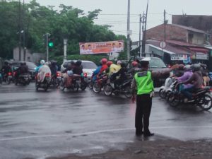 Walau Hujan Mengguyur, Polsek Medan Helvetia Tetap Laksanakan Pelayanan Gatur Lalin Pagi