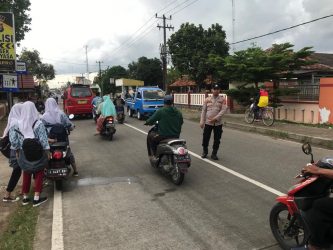 Polsek Tirtayasa Polres Serang Melaksanakan Strong Point Pagi Pengaturan Lalin di Depan Mako Polsek Tirtayasa