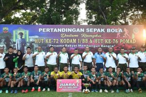 Medan – jurnalpolisi.id Persatuan Sepak Bola Angkatan Darat (PSAD) keluar sebagai juara pertama turnamen sepak bola HUT ke-72 Kodam I/BB Tahun 2022, Minggu (19/6/2022). Pangdam I/BB Mayjen TNI Achmad Daniel Chardin, SE, MSI, menyaksikan langsung laga pamungkas, ‘Tim Panser’ julukan PSAD Kodam I/BB, berhasil mengungguli BRI Medan dengan skor 3-1 hingga akhir pertandingan final yang…