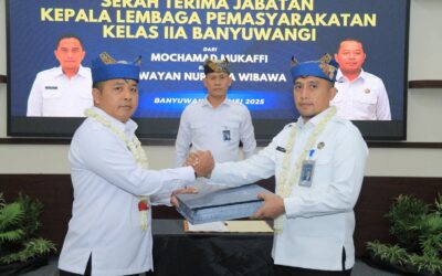 BANYUWANGI – jurnalpolisi.id Pucuk pimpinan Lembaga Pemasyarakatan (Lapas) Kelas IIA Banyuwangi kembali berganti. Mochamad Mukaffi yang telah menjabat selama 4 bulan akan mengemban amanah baru pada Kantor Wilayah Ditjen Pemasyarakatan Maluku Utara. I Wayan Nurasta Wibawa yang sebelumnya menjabat sebagai Kalapas Banjarbaru kini resmi memegang tongkat kepemimpinan Lapas Banyuwangi. Serah terima jabatan berlangsung di Aula…