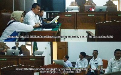 Jakarta – jurnalpolisi.id Persatuan Pewarta Warga Indonesia (PPWI) akhirnya mencabut gugatan Pra-peradilan (Prapid) terhadap Kepala Kepolisian Republik Indonesia (Kapolri) dalam kasus dugaan kesalahan prosedur penetapan tersangka dan penahanan atas diri wartawati Indragiri Hilir, Rosmely, oleh Kapolres Inhil beberapa waktu lalu. Pencabutan gugatan Prapid tersebut dilakukan dalam sidang hari pertama yang digelar di Pengadilan Negeri Jakarta…