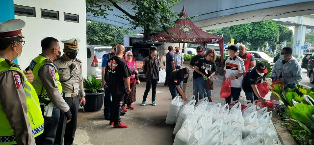 Sat Lantas Jakarta Barat Berkolaborasi dengan Motor Besar Club (MBC) Membagikan Takjil Kepada Masyarakat